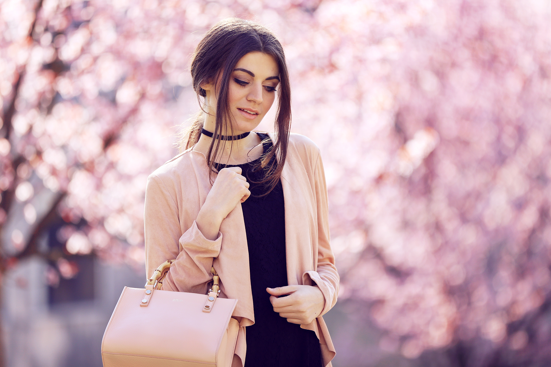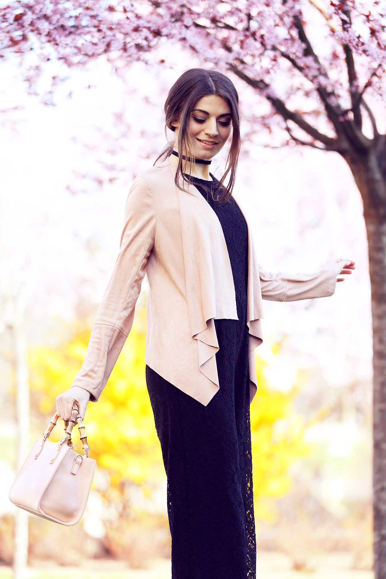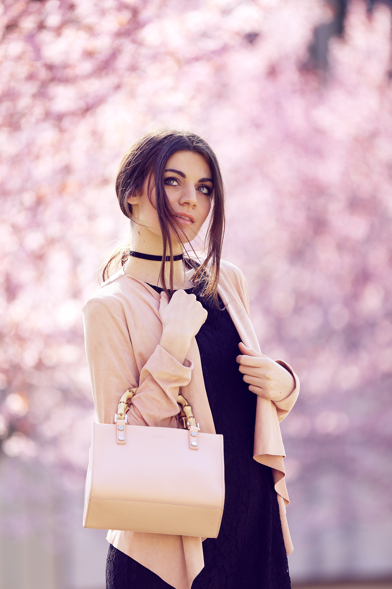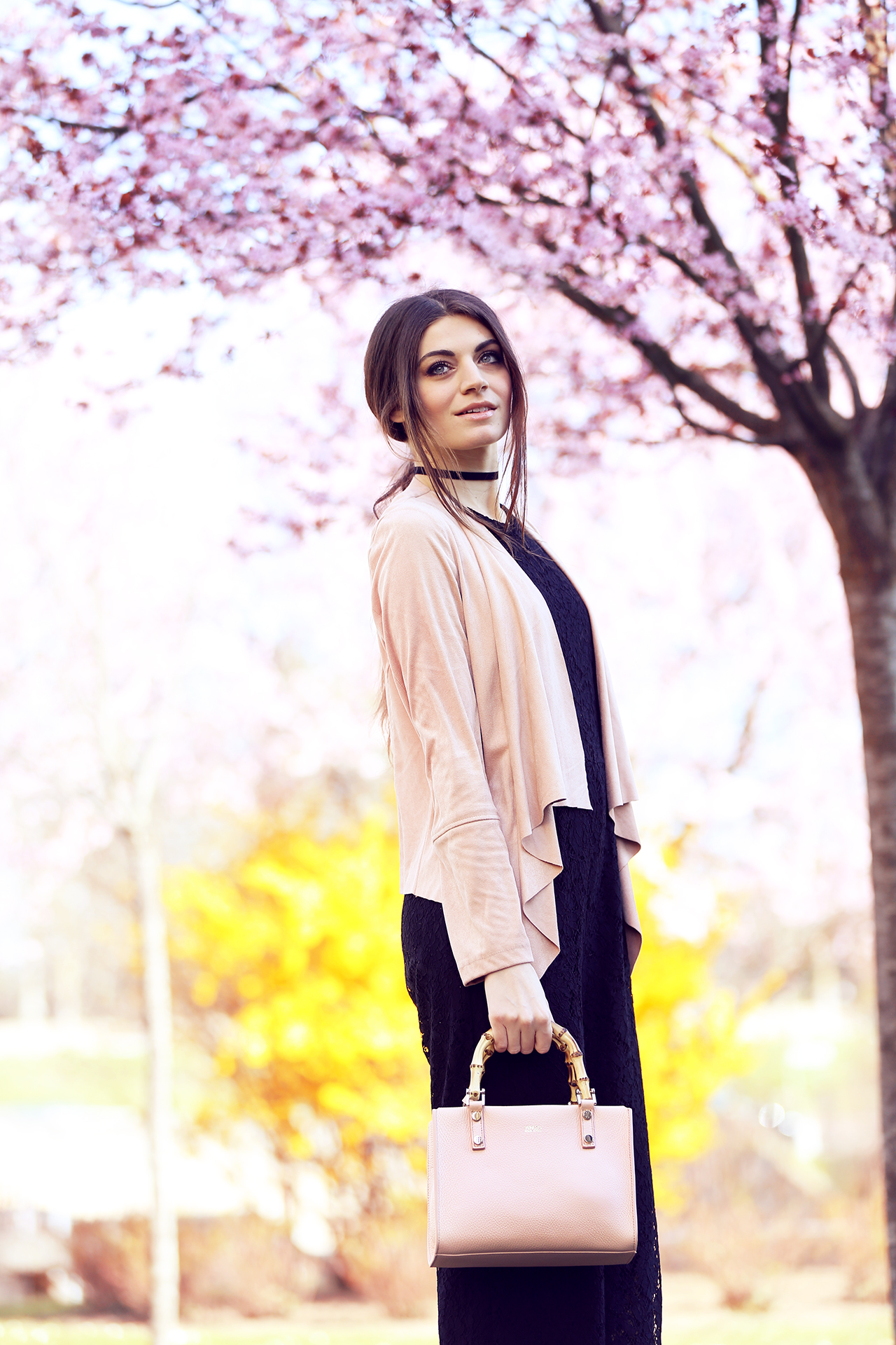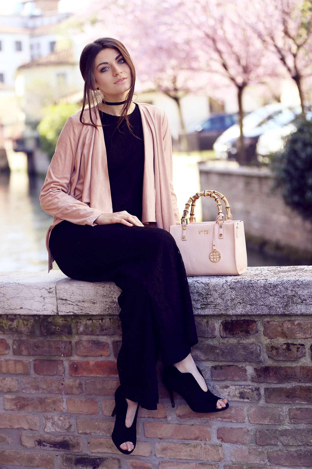 Nelle foto che vedete indosso uno dei miei modelli preferiti , “Venezia bamboo rose” , una borsa che può essere portata sia a mano che a tracolla e nonostante io non sia una grande amante del rosa, non ho potuto resistere a questo giardino di ciliegi nascosto nel cuore di Treviso e ho aggiunto al mio outfit un tocco più romantico!