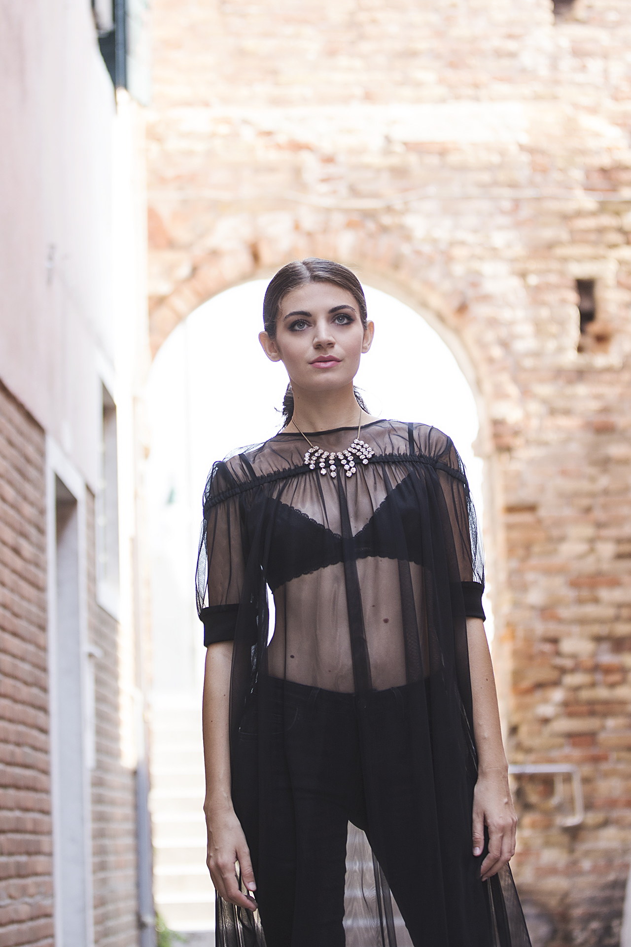 #look2 – Domenico Cioffi black dress, Erika Cavallini necklace, Kallistè shoes.