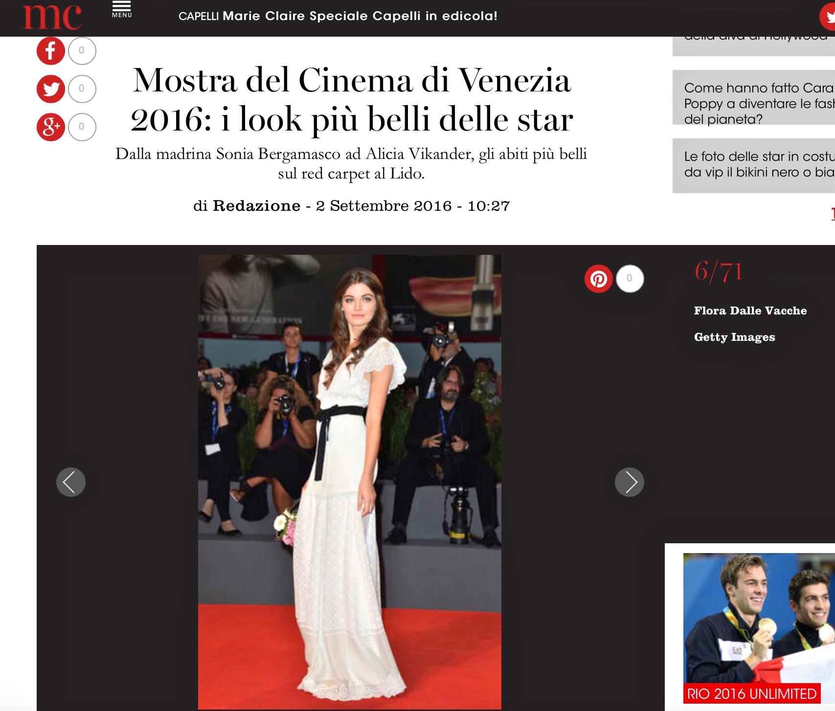 La 73esima edizione della Mostra del Cinema di Venezia per me è iniziata con una bellissima esperienza alla scoperta del mondo Grey Goose. Un gruppo di amici blogger e un allestimento retrò nel bellissimo Palazzo Contarini Polignac affacciato sul Canal Grande alla scoperta delle radici che hanno fatto la storia del brand. Un light lunch nella corte del palazzo e a seguire una bellissima gita nell’isola di Murano con visita in una delle più storiche fornaci del vetro dove è stato creato appositamente per ognuno di noi un calice esclusivo firmato Grey Goose. Insomma, un inizio di Festival del Cinema molto frizzante grazie al nuovo cocktail Le Grand Fizz di Grey Goose. Le mie giornate sono proseguite tra uno shooting e l’altro, in particolare ho amato scattare all’Hotel Centurion Palace il servizio per Don’t Cry Milan, brand che amo molto e con cui, in edizioni precedenti della Mostra del Cinema, avevo già avuto il piacere di lavorare. A seguire, la cena di gala di Jaeger Le Coultre alle tese dell’Arsenale con un allestimento da sogno e un’esibizione di ballo a tema The Great Gatsby, e ancora il party di Diva E Donna, La festa Ciak e ancora feste e party…E per concludere in bellezza questa edizione del Festival del Cinema il tanto sognato, quanto temuto red carpet in occasione della première del film “Questi Giorni”. Quei tre scalini iniziali che fanno tremare le gambe ad ogni donna e quella breve quanto intensa camminata che porta fino alla Sala Grande. Un’emozione indescrivibile, a ripensarci ho ancora la pelle d’oca, continuavo a ripetermi, “Flora non cadere, non cadere, non svenire, non tremare, va tutto bene…” E alla fine effettivamente è andato tutto bene! Sono molto felice di aver fatto questa esperienza e di essere stata pubblicata su alcune testate giornalistiche di rilievo come Marie Claire, Gioia, Panorama, Il Corriere Della Sera e soprattutto sono felice di avervi avuto ancora una volta al mio fianco sia fisicamente sia virtualmente. Un grazie speciale a voi che siete venuti di persona a vedermi e a sostenermi e a tutti i bellissimi messaggi e pensieri che mi avete inviato.