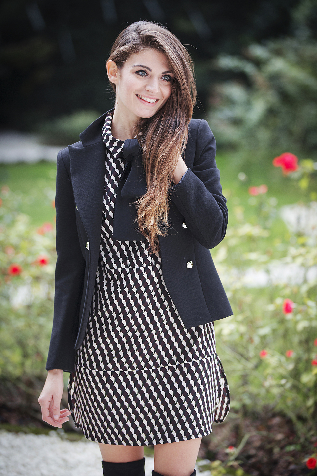 Ciao ragazze! Oggi ho creato per voi tre outfit molto femminili in cui ho voluto inserire alcuni dettagli retrò visto che amo tantissimo le mode del passato e mi piace interpretarle in chiave moderna. Ecco alcuni consigli per personalizzare i vostri look ed essere sempre chic! Partiamo subito con il primo look di oggi: un cappottino romantico, abbinato a un abito morbido verde petrolio a cui ho inserito un collo di pelliccia, orecchini lampadario e gli immancabili Cèline baby Audrey da vera diva del passato. Nel secondo outfit ho voluto ricreare un mood da “scolaretta” con dei tratti old school, indossando un abito sopra al ginocchio dai toni neutri con collo a fiocco, must della stagione autunno-inverno 2015/2016 a cui ho abbinato i sempre più in voga e amati stivali overknee. Per il terzo look ho scelto un abito morbido, molto accollato con una fantasia geometrica simile alle stampe vintage, ho abbinato uno stivaletto in camoscio con frange e una maxi borsa in pelle con un lavaggio che le attribuisce quel tono vissuto che personalmente adoro. Spero che le proposte di oggi vi siano piaciute! Fatemi sapere se anche a voi piace ispirarvi e giocare con stili e mode del passato 🙂
